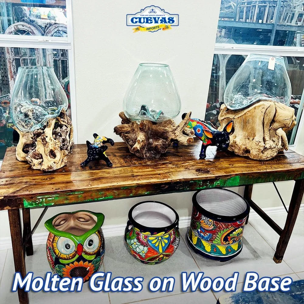 Whether your style is modern, rustic, or eclectic, our molten glass on wood decorations fit seamlessly into any decor theme. The organic shapes of the glass combined with the natural texture of the wood make these pieces versatile and eye-catching.
